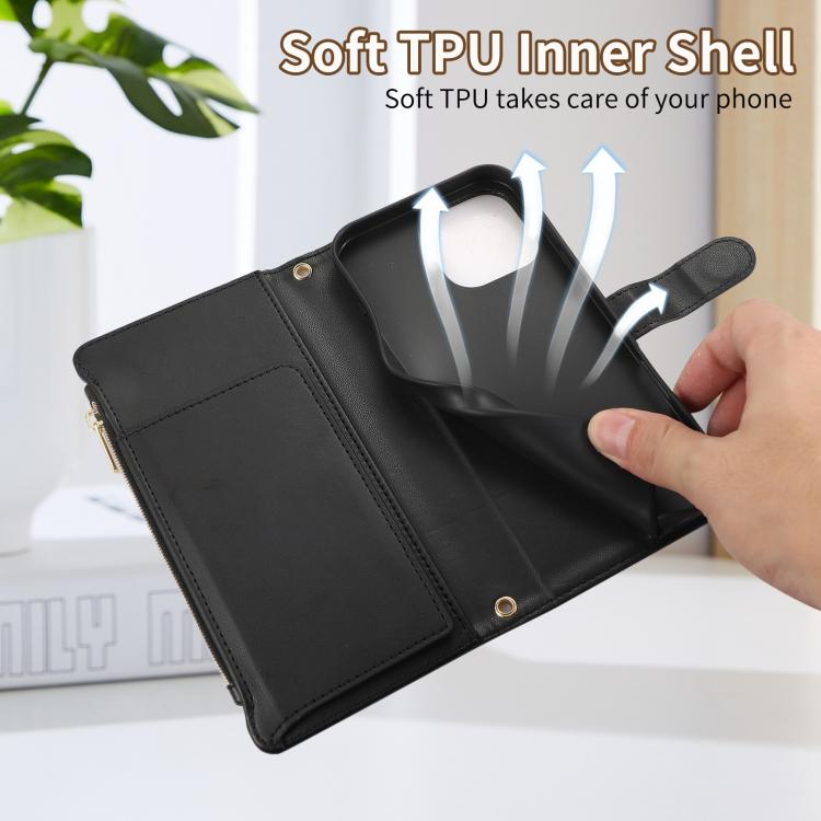 5. Función de billetera para múltiples tarjetas: múltiples ranuras para tarjetas y bolsillos con cremallera para billetera, los compartimentos para efectivo pueden almacenar sus tarjetas de crédito y pequeños billetes diarios.