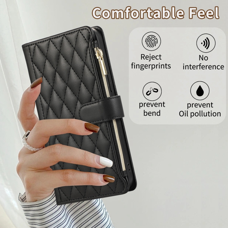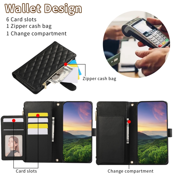 Funda de Cuero Tipo Billetera con Cremallera Rombal para iPhone Xr (Negra)