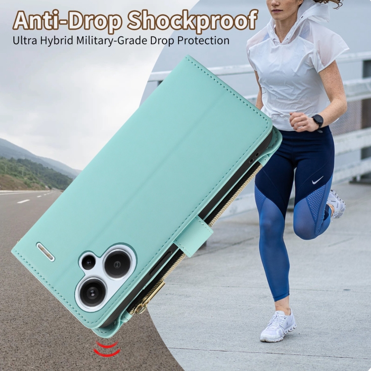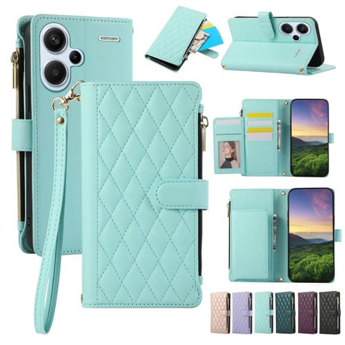 Funda de Cuero Tipo Billetera con Cremallera Rombal para Redmi Note 13 Pro+ 4G/5G (Cian)