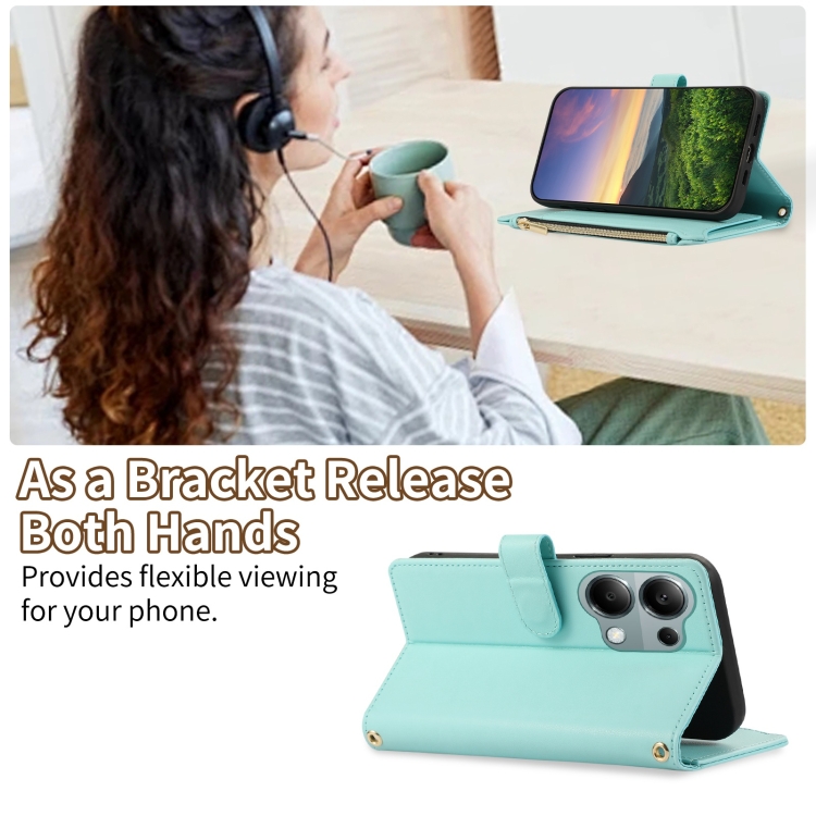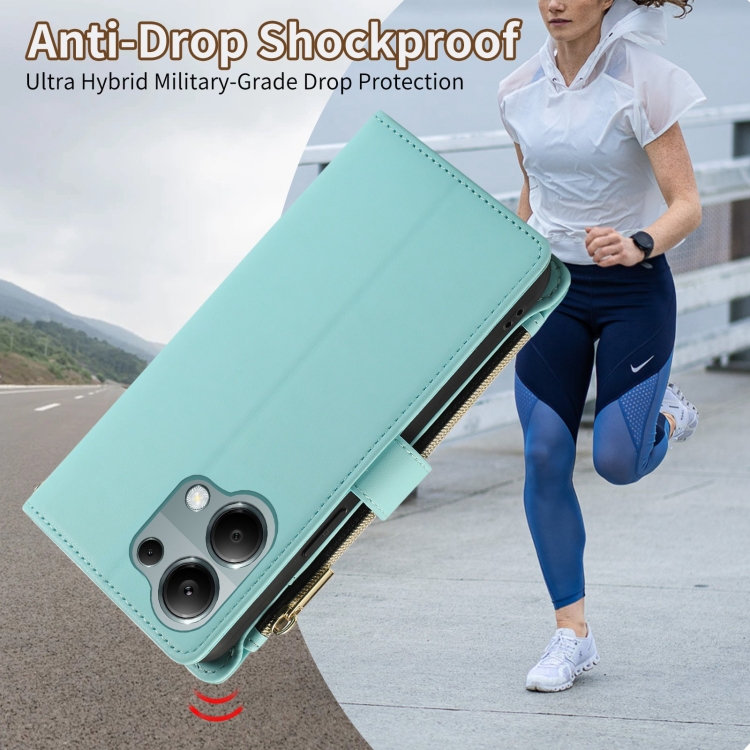 Funda de Cuero Tipo Billetera con Cremallera Rombal para Redmi Note 13 Pro 4G (Cian)