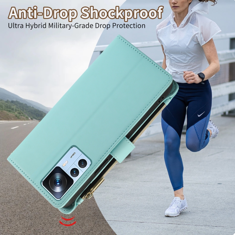 Funda de Cuero Tipo Billetera con Cremallera Rombal para Xiaomi 12T/12T Pro (Cian)