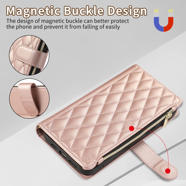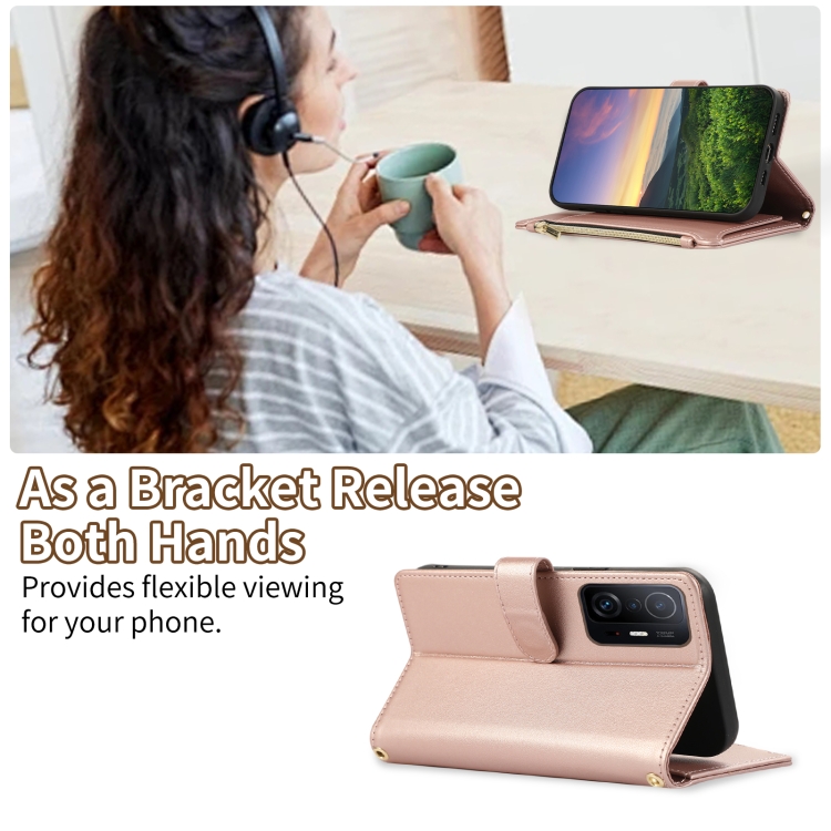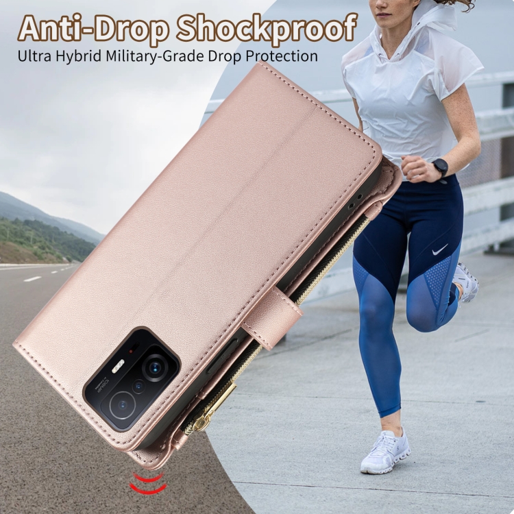 Funda de Cuero Tipo Billetera con Cremallera Rombal para Xiaomi Mi 11T (Oro Rosa)