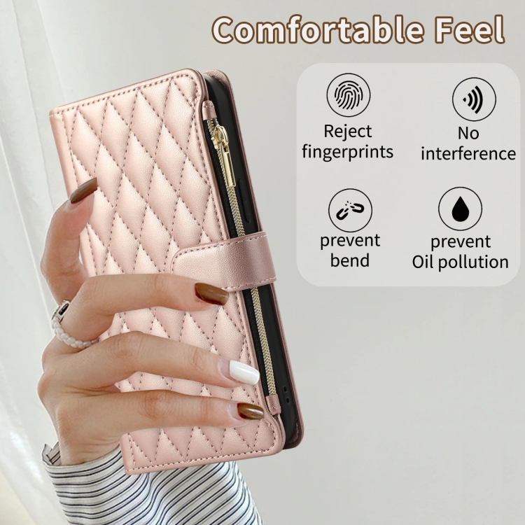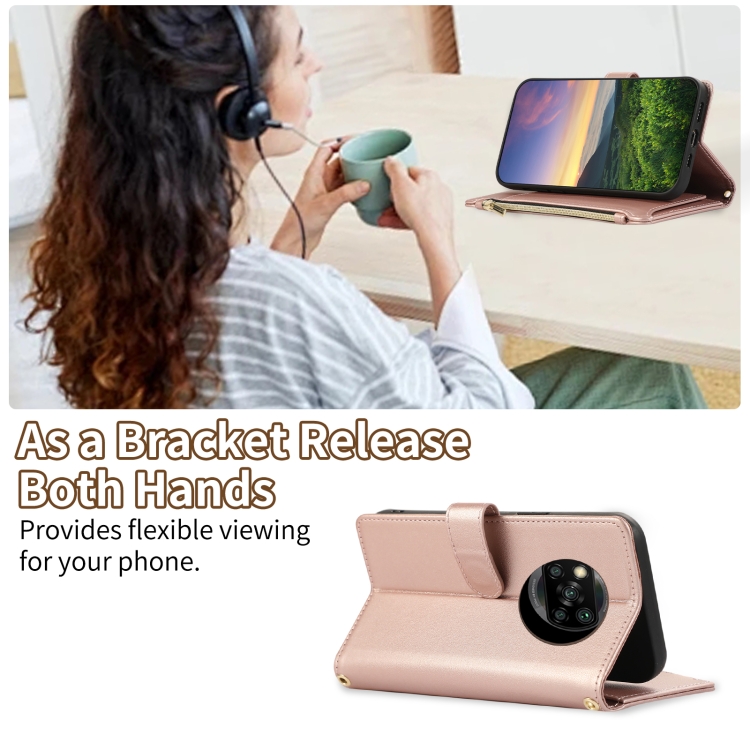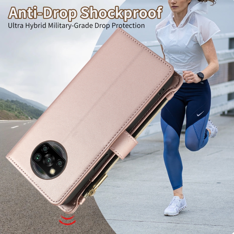 Funda de Cuero Tipo Billetera con Cremallera Rombal para Xiaomi Poco X3 Nfc (Oro Rosa)