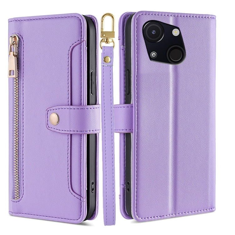 Funda de Cuero Tipo Billetera con Cremallera y Textura de Oveja para Itel A50C 4G (Morado)