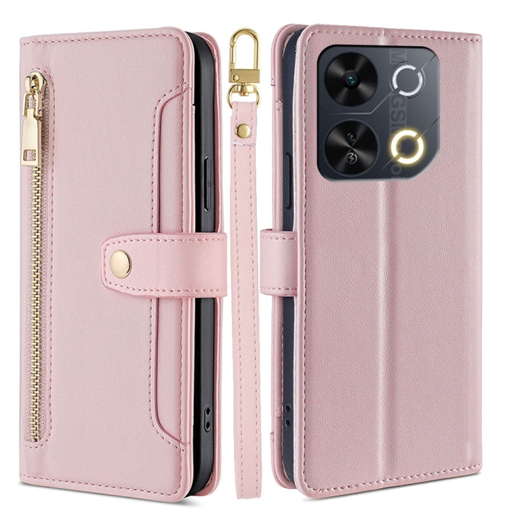 Funda de Cuero Tipo Billetera con Cremallera y Textura de Oveja para Itel P65 (Rosa)