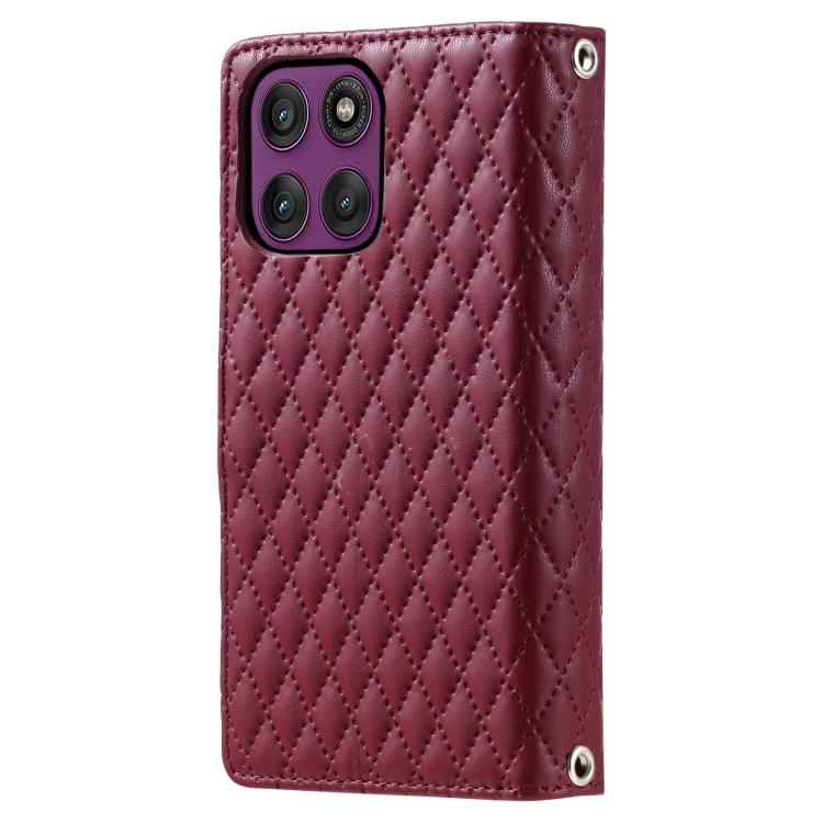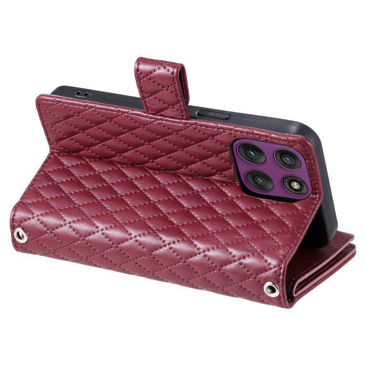 Funda de cuero tipo billetera con cremallera y diseño de celosía brillante para Motorola Edge 60 Pro (rojo vino)