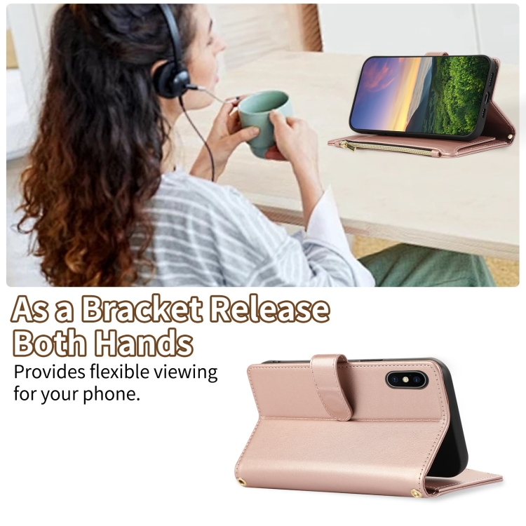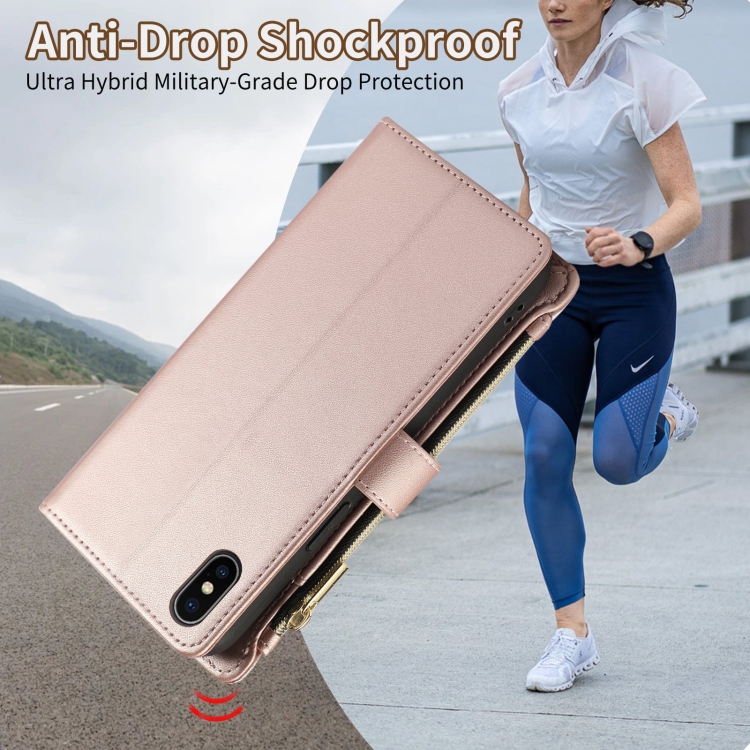 Funda de Cuero Tipo Billetera con Cremallera y Diseño Rombal para iPhone Xs Max (Oro Rosa)
