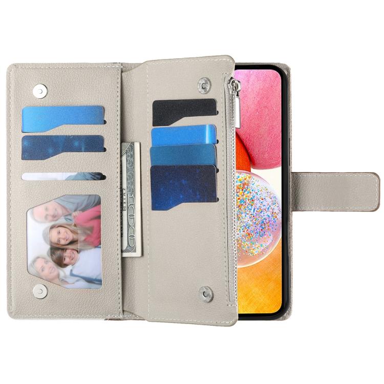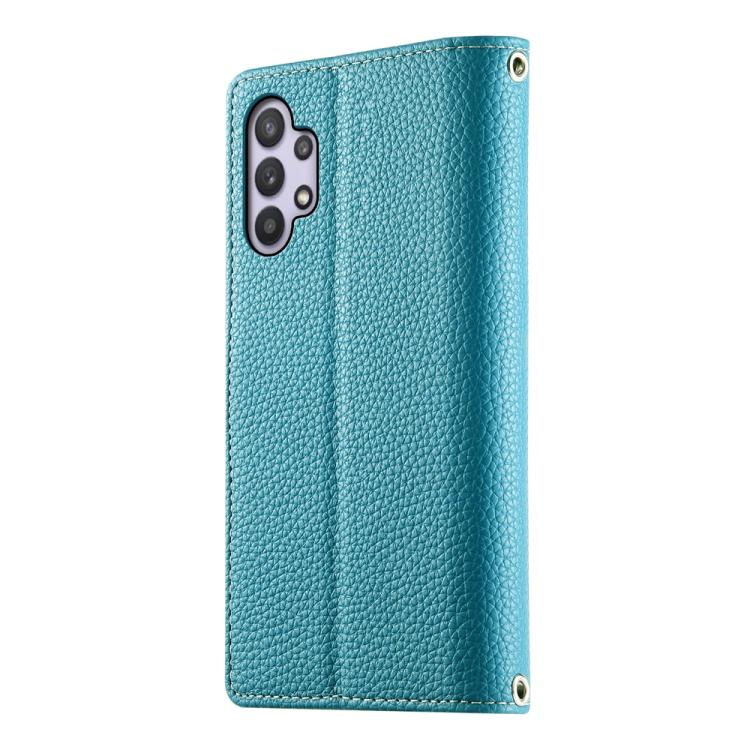 Funda de cuero tipo billetera con cremallera y múltiples tarjetas para Samsung Galaxy A32 5G con costuras y correa corta (azul)