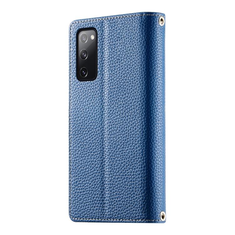Funda de cuero tipo billetera con cremallera y múltiples tarjetas para Samsung Galaxy S20 FE con costuras y correa corta (azul oscuro)