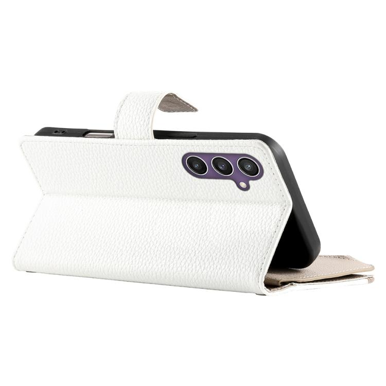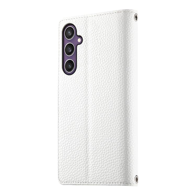 Funda de cuero tipo billetera con cremallera y múltiples tarjetas para Samsung Galaxy S23 FE 5G, con costuras y correa corta (blanca)
