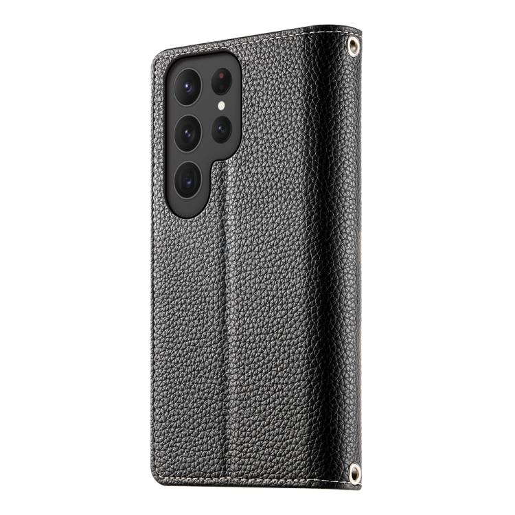 Funda de cuero tipo billetera con cremallera y múltiples tarjetas para Samsung Galaxy S23 Ultra 5G, con costuras y correa corta (negra)