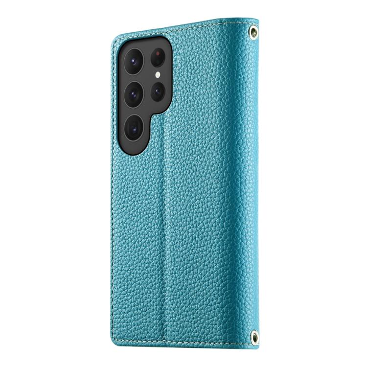 Funda de cuero tipo billetera con cremallera y múltiples tarjetas para Samsung Galaxy S24 Ultra 5G, con costuras y correa corta (azul)