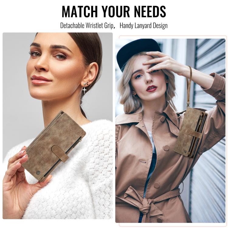 Funda de cuero tipo billetera con cremallera y ranuras para tarjetas para iPhone 17 CaseMe C30 (marrón)