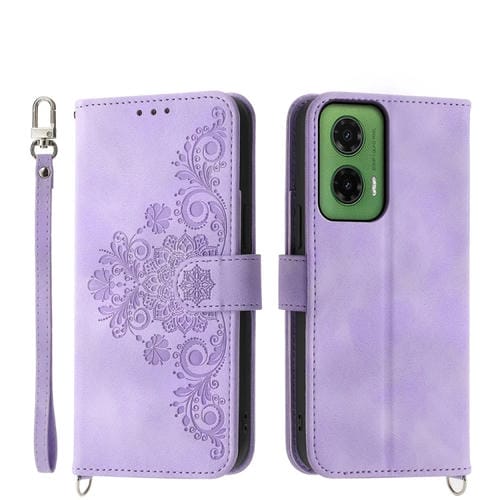 Funda Cuero Tipo Billetera Motorola Moto G35 Diseño Flores Relieve (Morado)