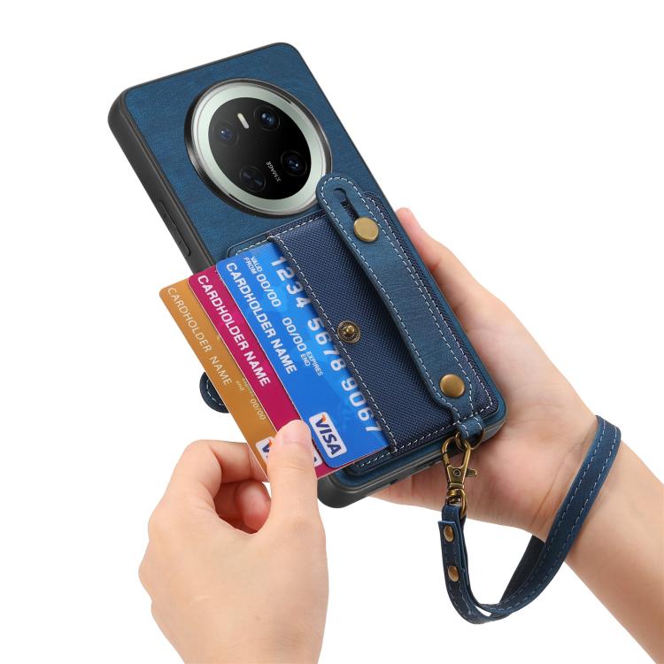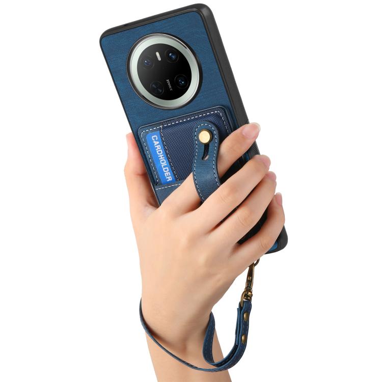 Funda de Cuero Tipo Billetera para Huawei Mate 70 con Pulsera Cruzada (Azul)