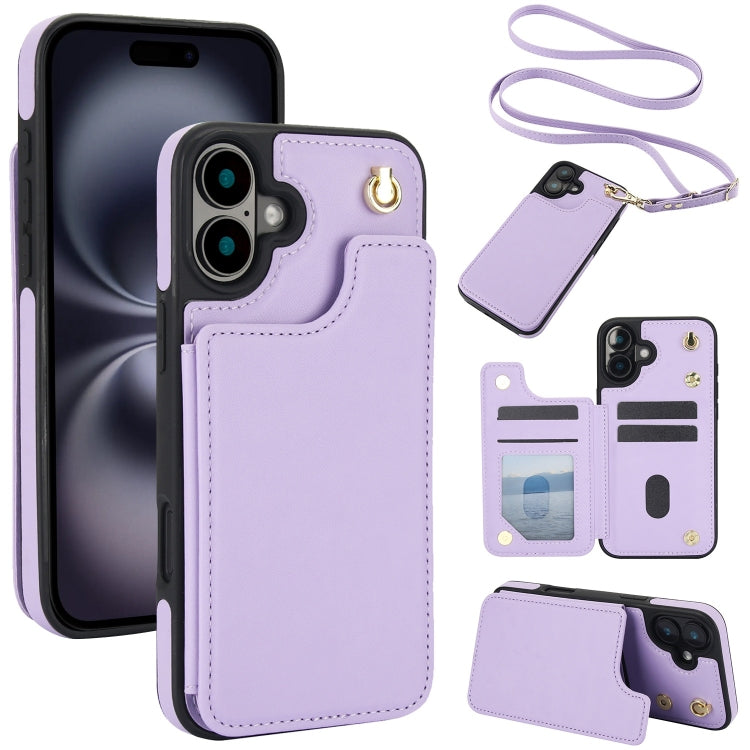 Funda de Cuero Tipo Billetera con Doble Hebilla Cruzada para iPhone 16 (Morado Claro)