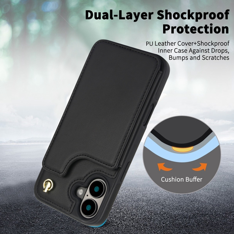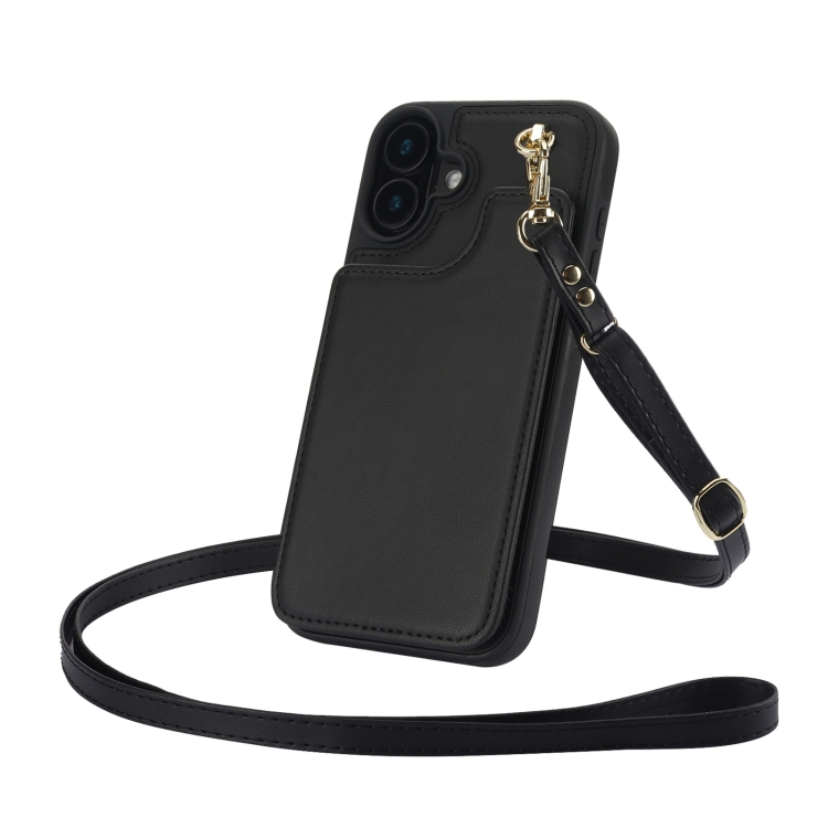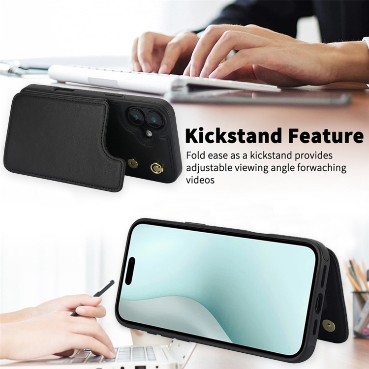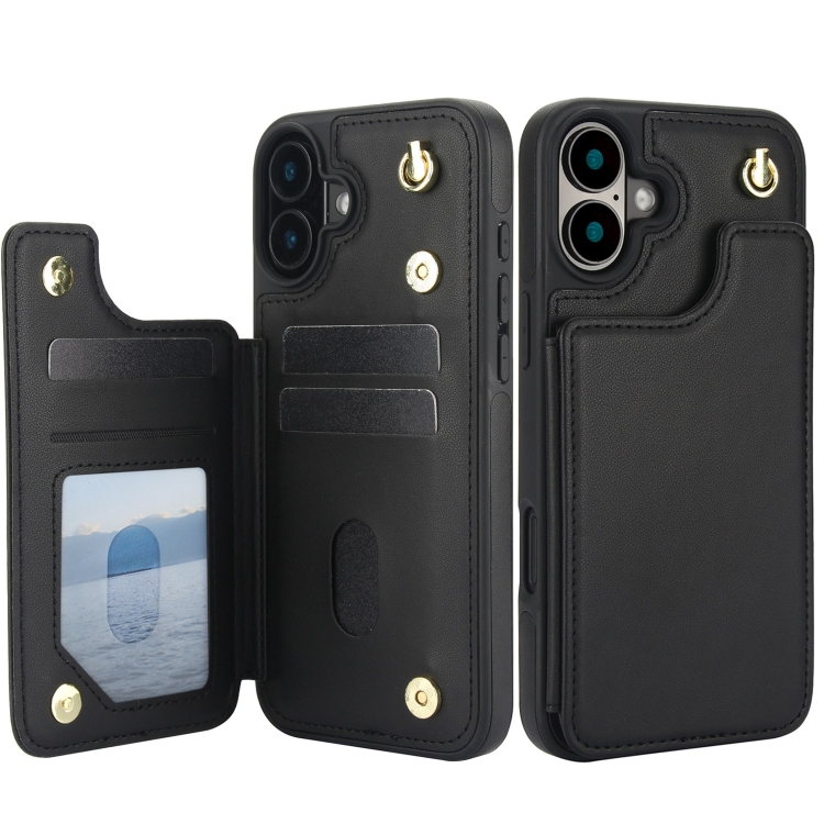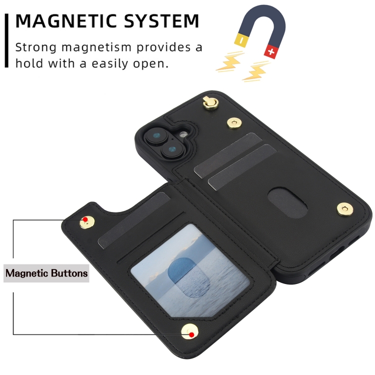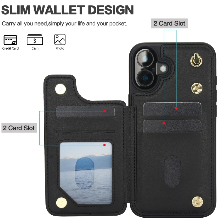 Funda tipo Billetera de Cuero con Doble Hebilla Cruzada para iPhone 16 (Negro)