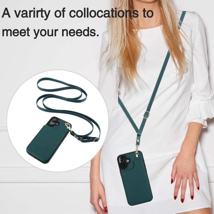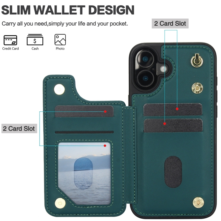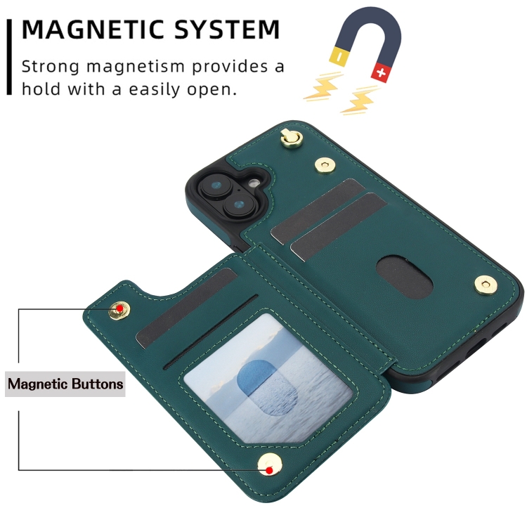 Funda de Cuero Tipo Billetera con Doble Hebilla Cruzada para iPhone 16 (Verde)