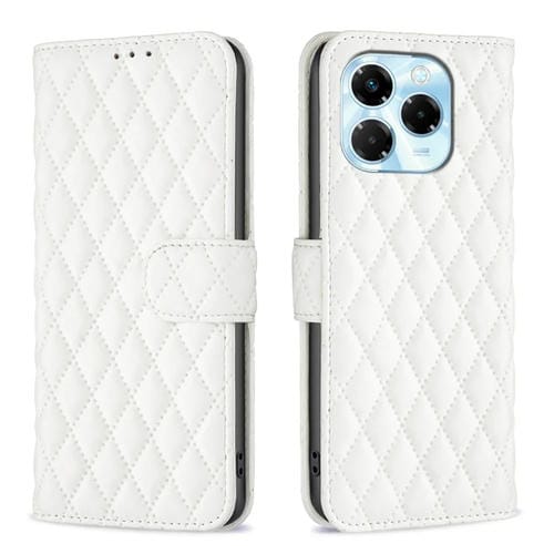 Funda de Cuero Tipo Billetera para Infinix Note 40X 5G con Tapa y Diseño Celosía (Blanca)