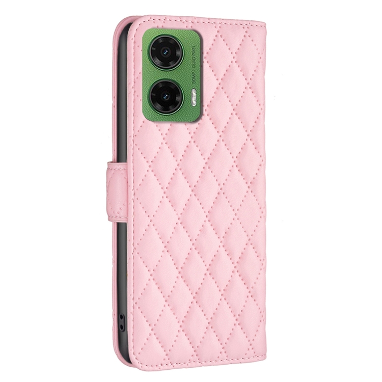 Funda de Cuero Tipo Billetera para Motorola Moto G35 con Tapa y Diseño Celosía (Rosa)