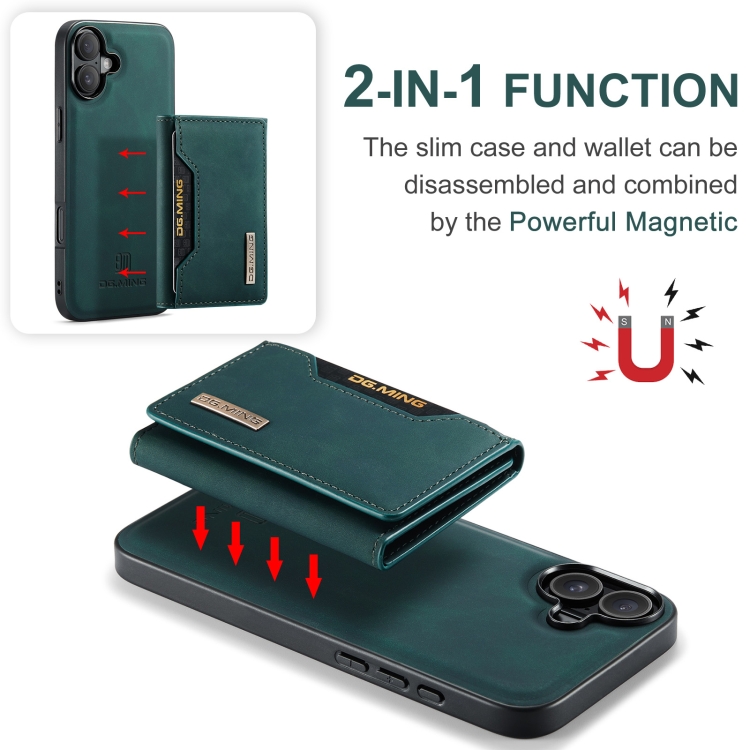 Funda de Cuero Tipo Billetera Dg.Ming M2 Series para iPhone 16 Plus (Verde)