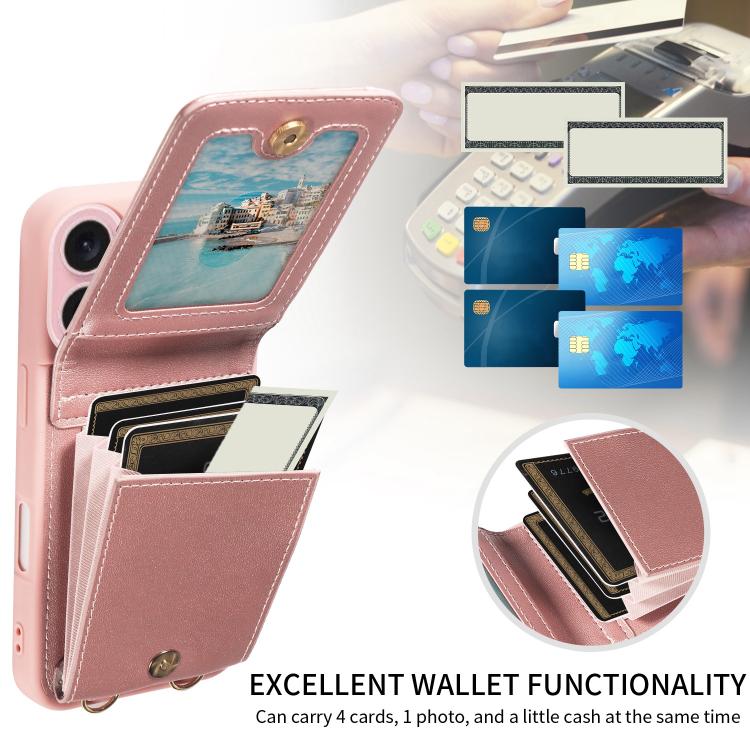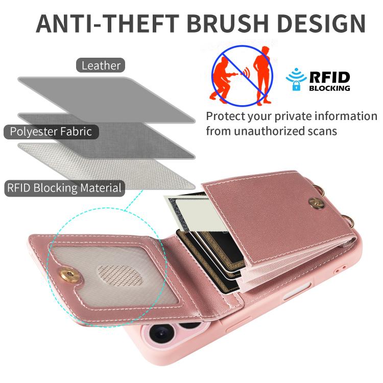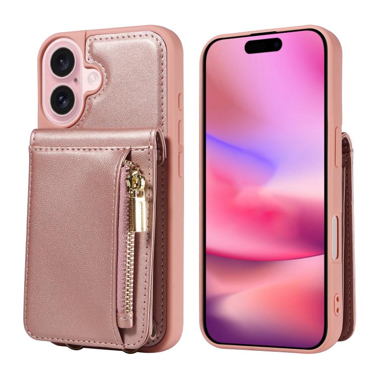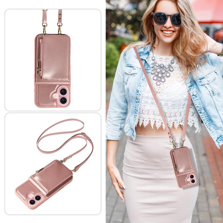 Funda de cuero tipo cartera con cremallera y cordón para iPhone 17 (oro rosa)