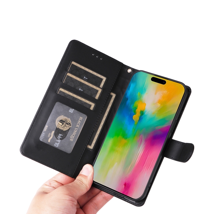 Funda Tipo Cartera Cuero con Diseño Entramado Diamantes para iPhone 16 Plus (Negra)