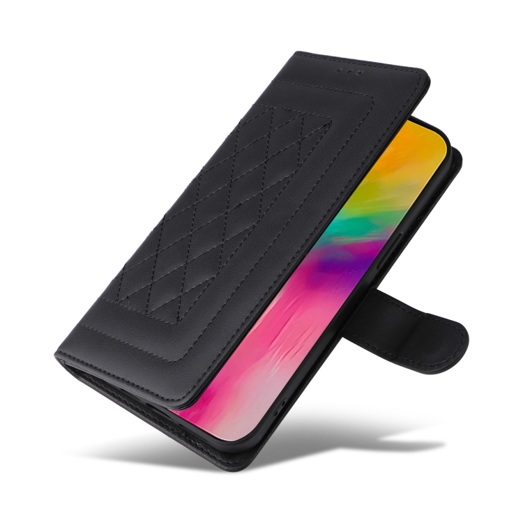 Funda tipo Cartera de Cuero para iPhone 16 Pro con Diseño Entramado de Diamantes (Negra)