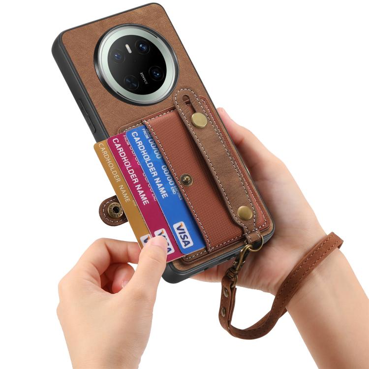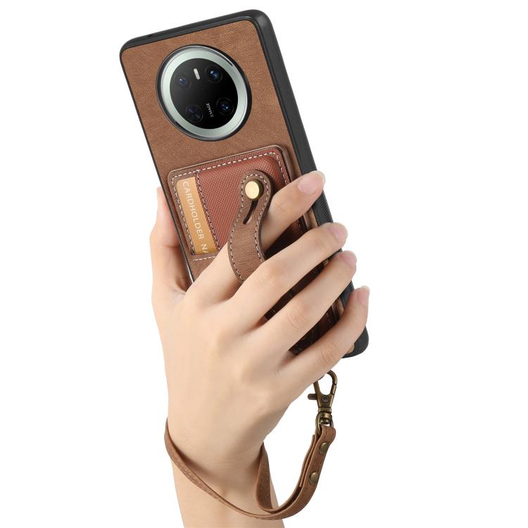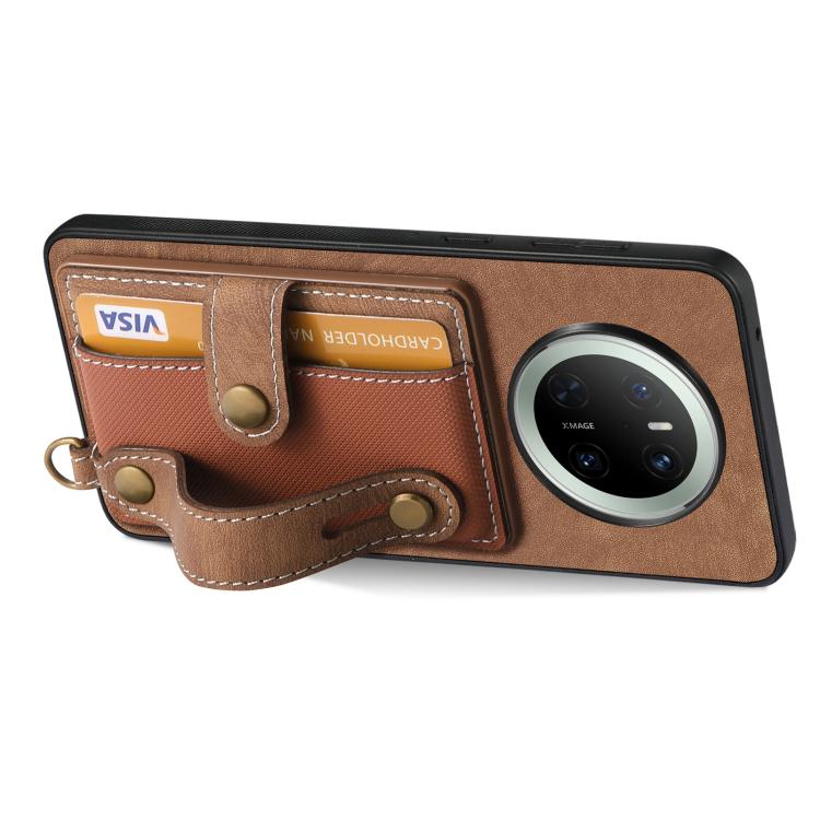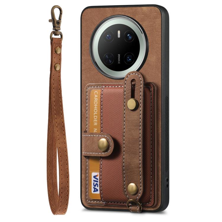 Funda de Cuero Tipo Cartera Huawei Mate 70 Diseño Retro Pulsera Cruzada (Marrón)