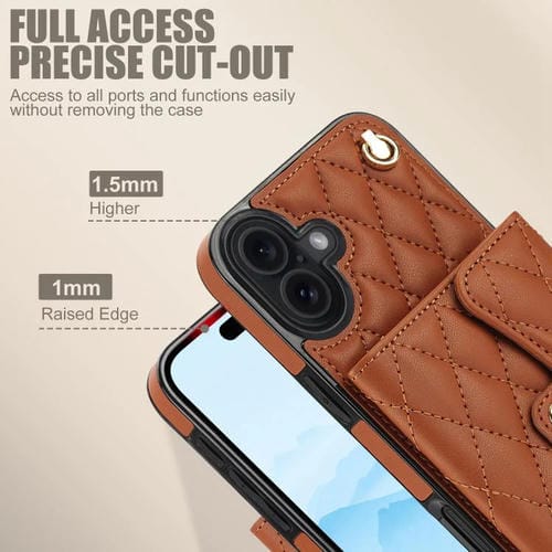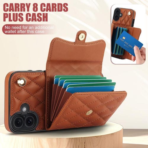 Funda de cuero tipo cartera horizontal con diseño rómbico cruzado para iPhone 17 (marrón)