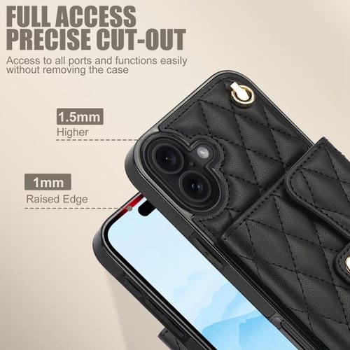 Funda de cuero tipo cartera horizontal con diseño rómbico cruzado para iPhone 17 (negra)