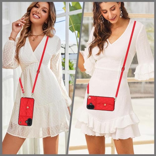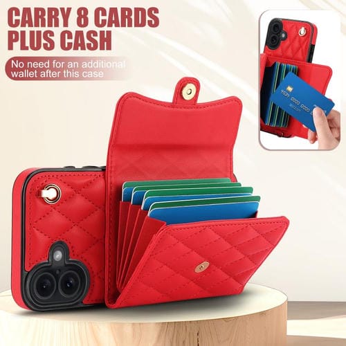 Funda de cuero tipo cartera horizontal con diseño rómbico cruzado para iPhone 17 (roja)