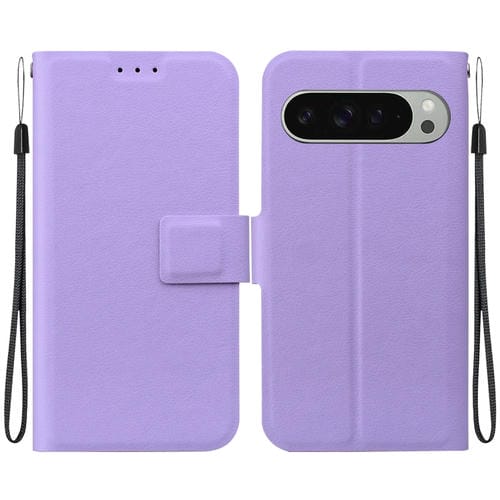 Funda de Cuero Ultrafina con Hebilla Magnética para Google Pixel 9 y Pixel 9 Pro (Morada)