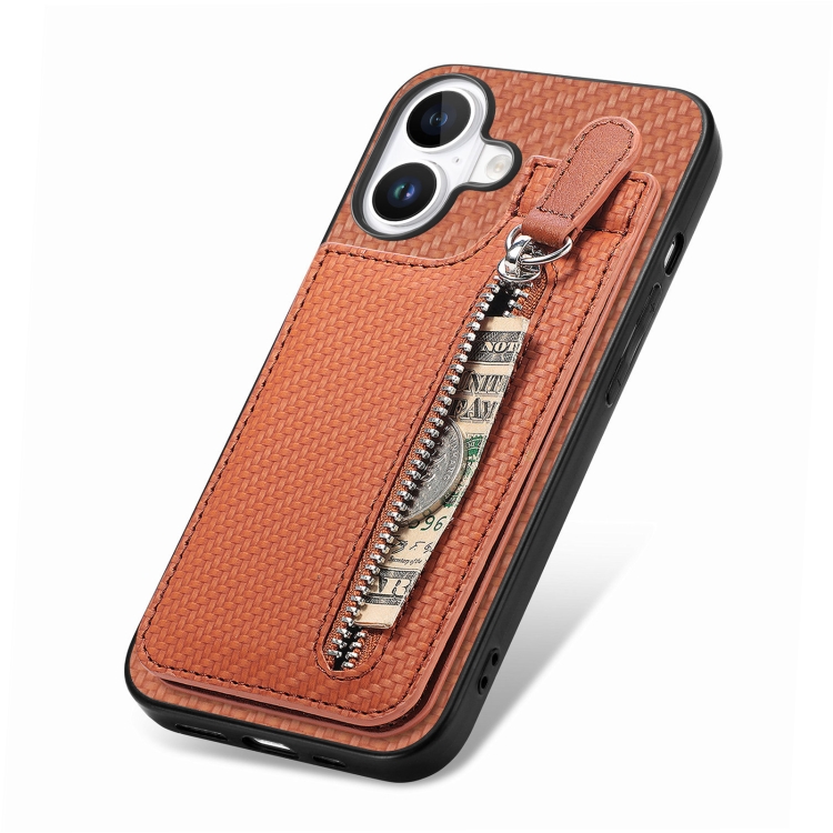 Funda de Fibra de Carbono para iPhone 16 con Cremallera Vertical (Marrón)