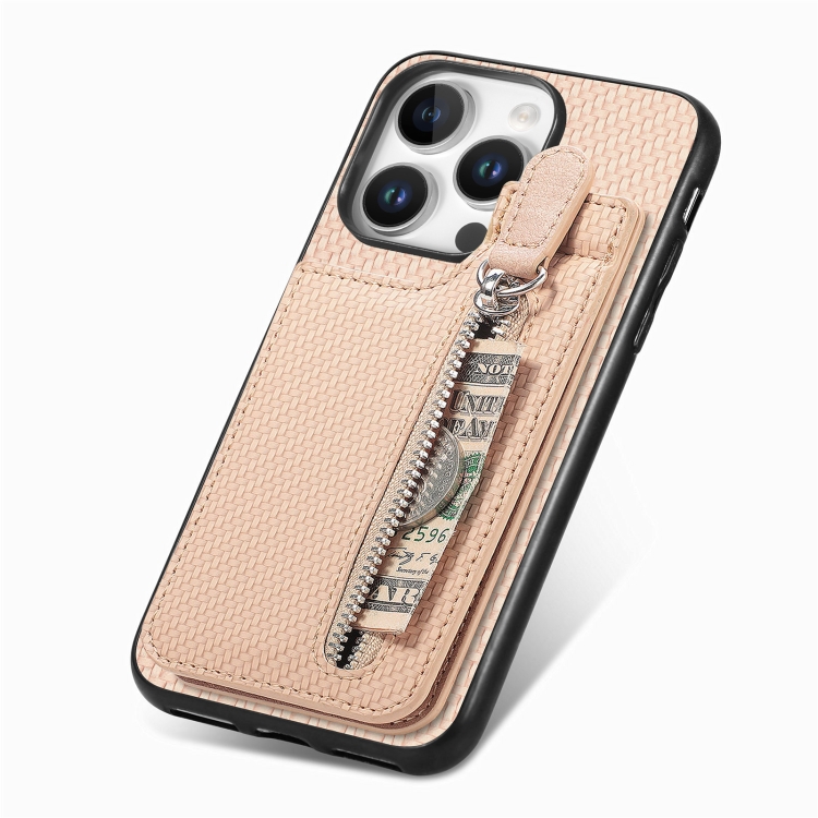 Funda de Fibra de Carbono con Cremallera Vertical para iPhone 16 Pro (Caqui)