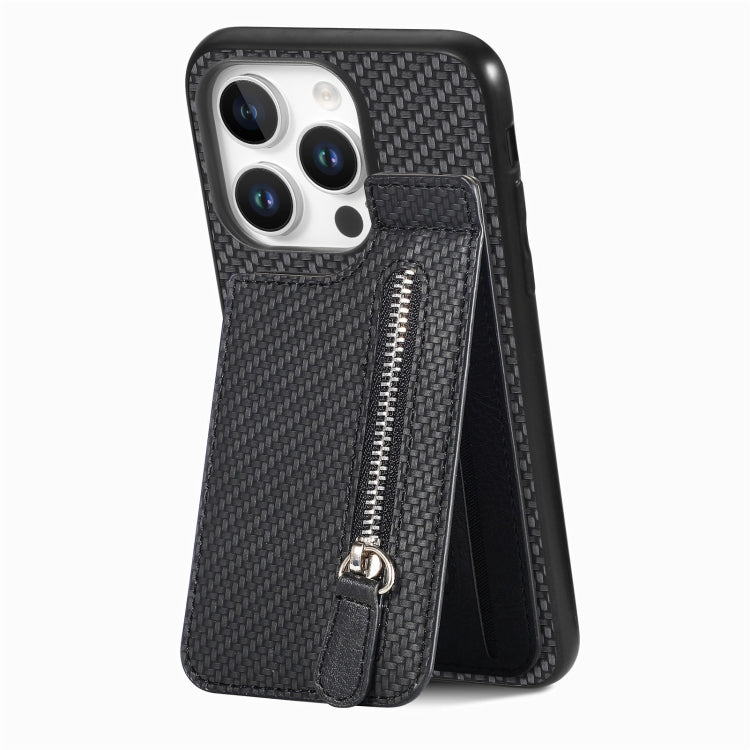 Funda Fibra de Carbono con Cremallera Vertical para iPhone 16 Pro Max (Negra)