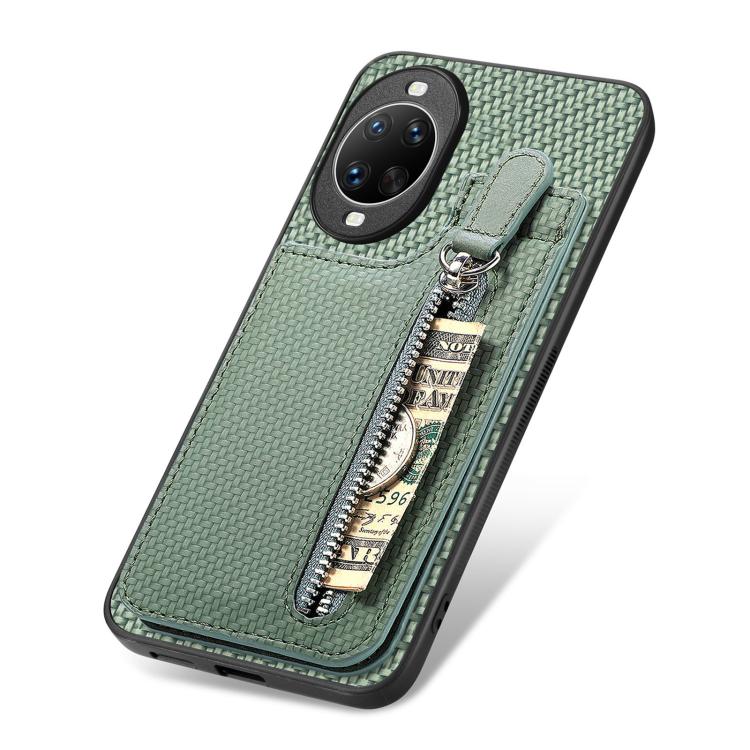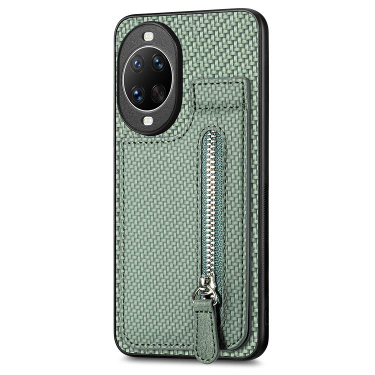 Funda de fibra de carbono con tapa vertical y cremallera para Huawei Nova 14 Pro (verde)