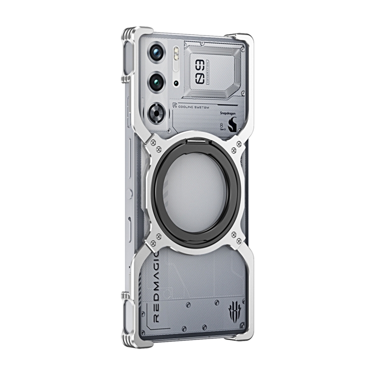 Funda de Metal para ZTE Nubia Red Magic 10 Pro/10 Pro+ con Soporte Magsafe y Brazo Mecánico (Plateada)