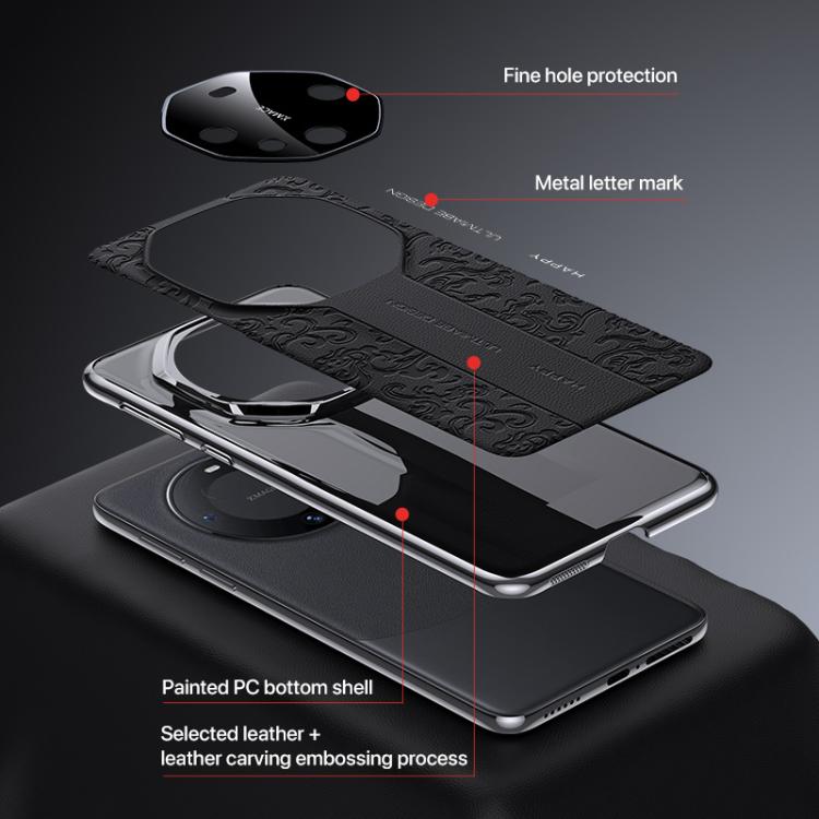 Funda de PC de cuero liso con diseño de dragón en la nube para Huawei nova 14 Ultra (negro)