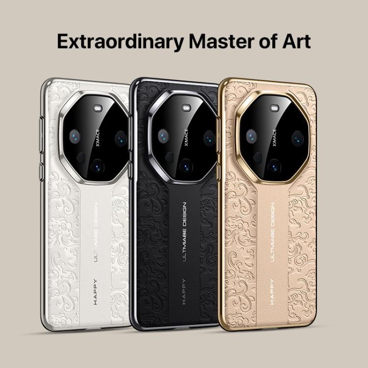 Funda de PC de cuero liso con diseño de dragón en la nube para Huawei Pura 80 5G (dorada)