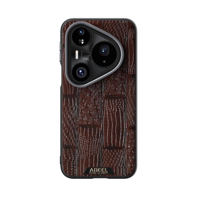 Funda de piel auténtica con diseño de bestia ABBEEL 6D y micrograbado MagSafe para Huawei Pura 80 Pro 5G / 80 Pro+ 5G (marrón)