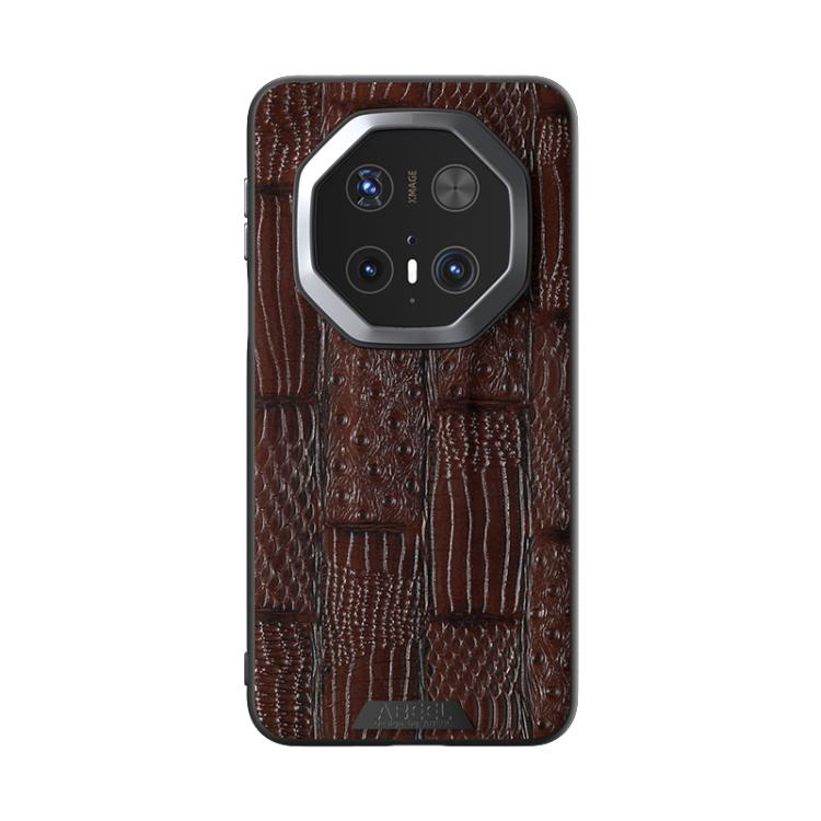 Funda de Piel Auténtica con Micrograbado 6D para Huawei Mate 70 Rs Ultimate con Diseño Abeel Beast (Marrón)