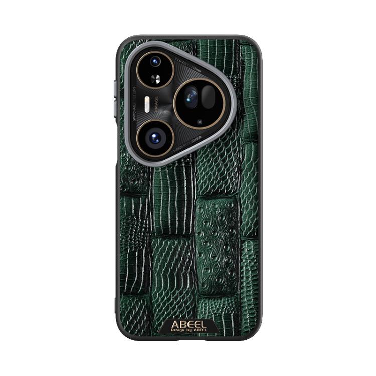 Funda de piel auténtica con micrograbado MagSafe 6D para Huawei Pura 80 Ultra 5G (Verde)