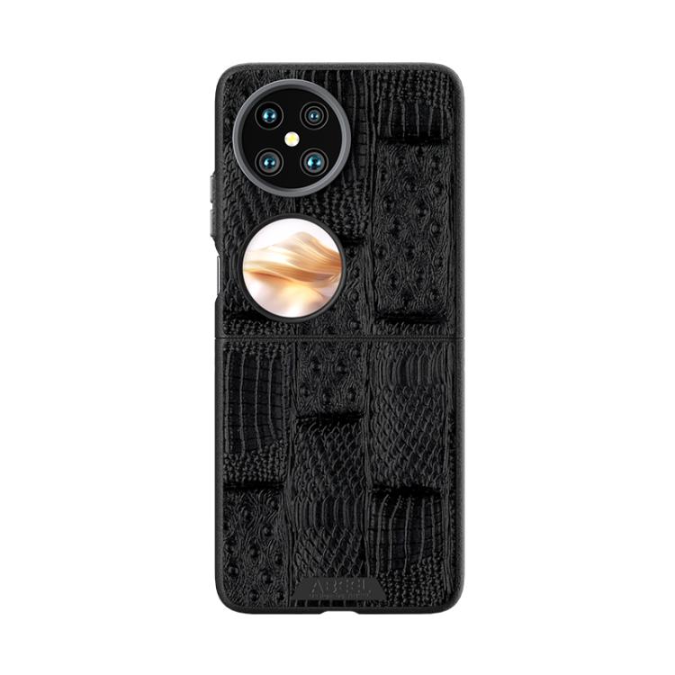 Funda de Piel Auténtica Magsafe con Micrograbado 6D Abeel Beast Pattern para Huawei Pocket 2 (Negra)