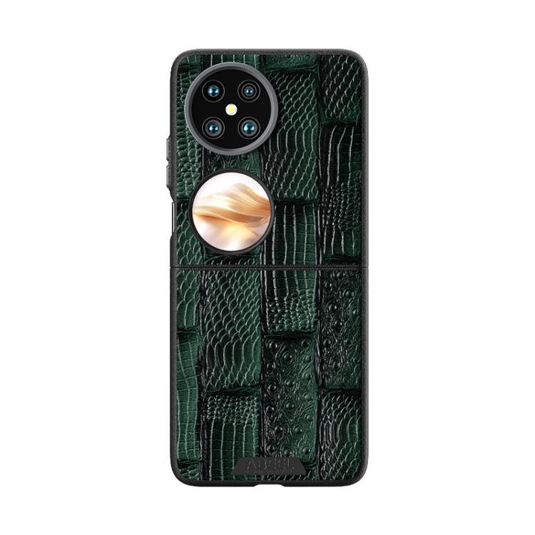 Funda de Piel Auténtica Magsafe con Micrograbado 6D Abbeel Beast Pattern para Huawei Pocket 2 (Verde)