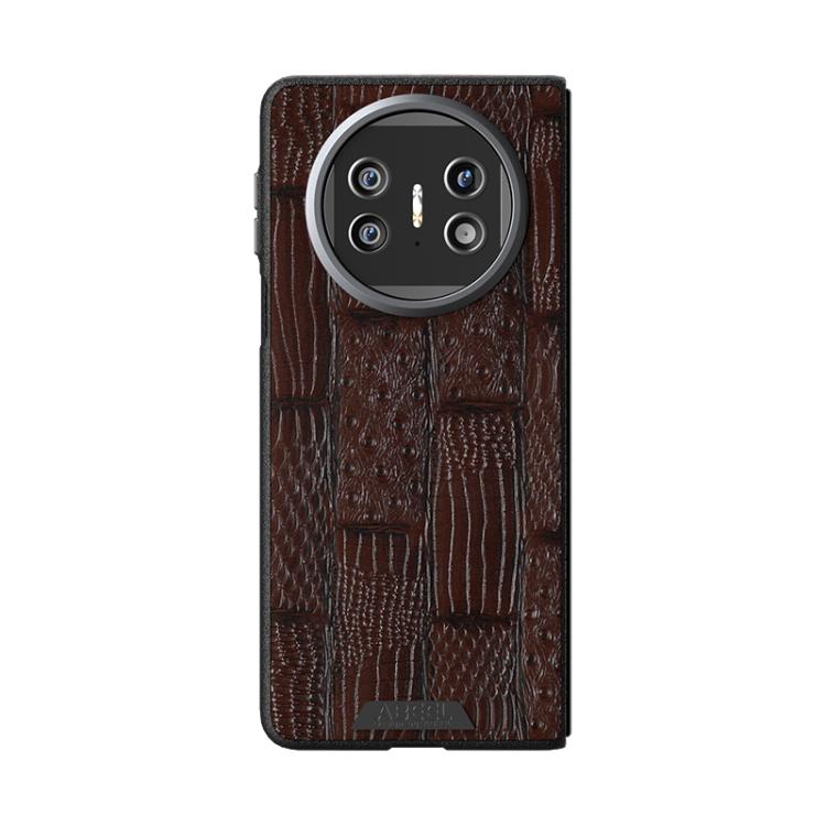 Funda de Piel Auténtica Magsafe con Micrograbado 6D y Diseño Abeel Beast para Huawei Mate X5 (Marrón)