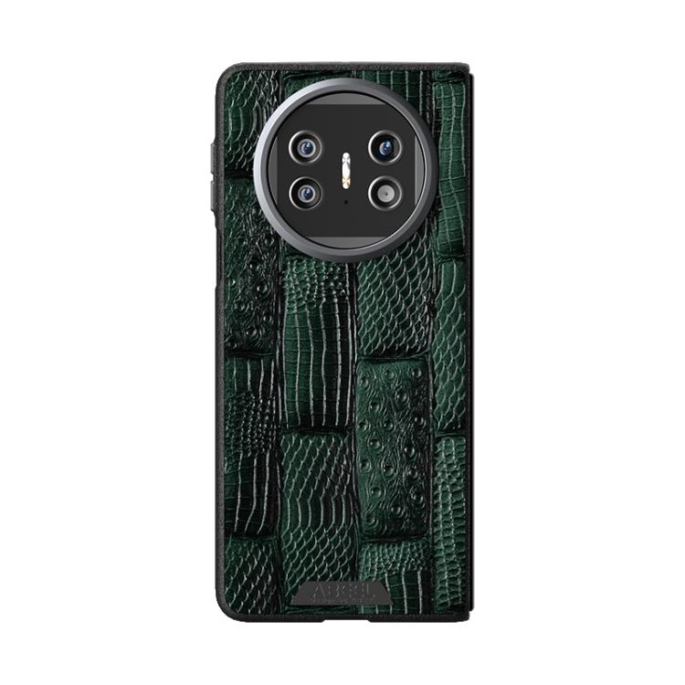 Funda de Piel Auténtica Magsafe con Micrograbado 6D y Diseño Abeel Beast para Huawei Mate X5 (Verde)