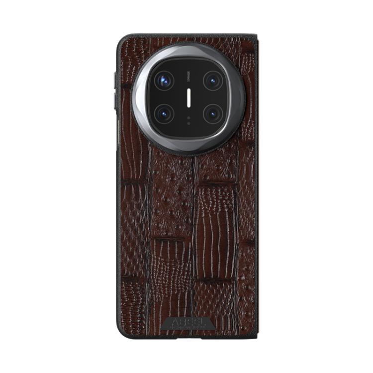 Funda de Piel Auténtica Magsafe con Micrograbado 6D y Diseño Abeel Beast para Huawei Mate X6 (Marrón)