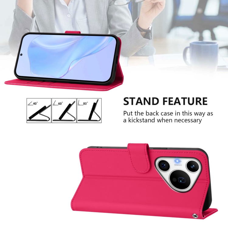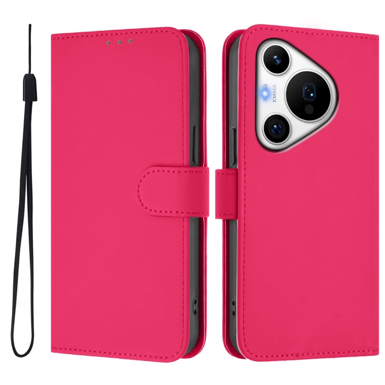 Funda de Piel con Cordón para Huawei Pura 70 Pro y 70 Pro+ (Rosa y Rojo)