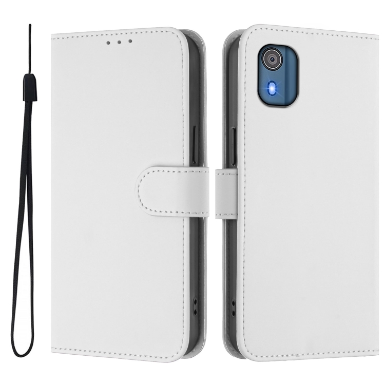 Funda de Piel con Cordón para Nokia C02 con Tacto de Piel (Blanco)